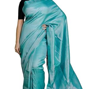 Women Indian Patch Work Designer Nakshi Border Italian Net with Sequin Woven Bollywood Sarees in Aqua Blue and Maroon – with Blouse Piece